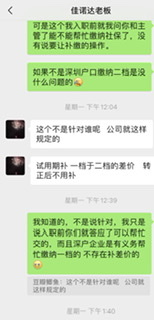 这家公司是小公司,差不多三十多人,真的是太无语了对这个老板,入职当天就上到下午就让走人了,因为这公司没有人事,所以交资料签合同都是财务给我,然后因为我是一档社保所以叫财务帮忙缴纳一档的,但是财务说交一档社保要跟老板说,然后我就去找他了,结果那老板就是不肯全额缴纳,我都第一次碰到还要劳动者不缴纳社保的费用的,按照要求,企业是必须要深圳户口缴纳一档的,二档是不行的,结果我说多了几句那老板就不行了(看上传的以下聊天记录),我后面都妥协了,说可以接受我自己补差额,他就还是说了让我走,太离谱了!还pua我说我没有学习的心,那这点社保的钱你都不肯出,是不是格局太小了?连劳动者的基本保障都给不到!面试前我就问清楚了能不能帮忙缴纳社保,老板也说清楚了会帮忙缴纳,入职了才说缴纳一档的还要补差额,这个怎么不当时补充清楚?真的是太无语了……然后美客多平台这几个月还要强制加班到七点,说是业绩不好!
