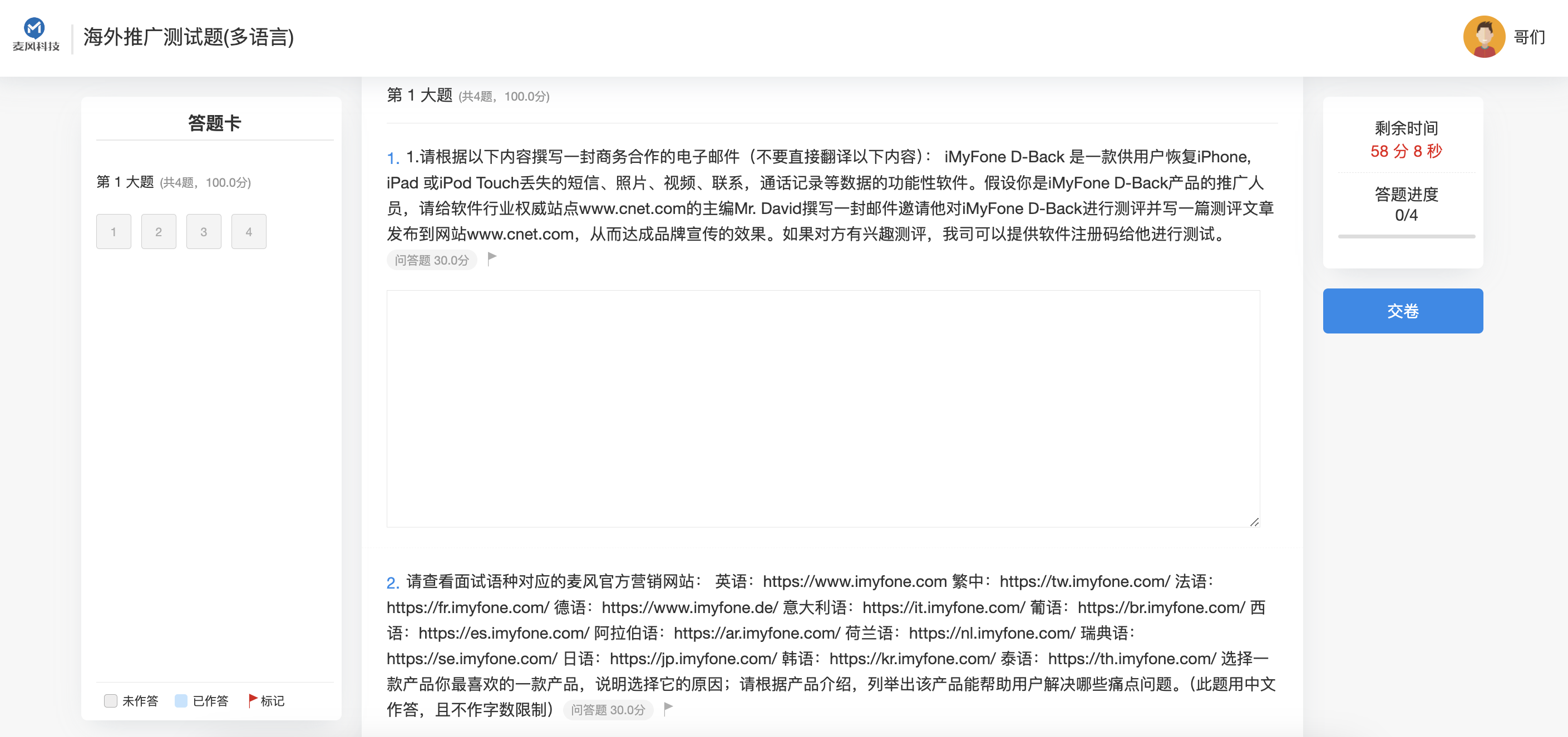 面的海外推广,面试前有一个笔试,我花了一小时去写,第二天给我说笔试没通过……我靠,你是套经验还是否认了GPT的创意?