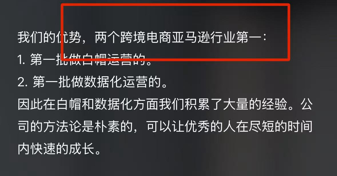 有种一言难尽的感觉。有2轮面试,1是HR和亚马逊负责人线下面,2是3个合伙人之一电话面。不过业务模式好像是每个人给一个新店铺去做,感觉像开荒的。