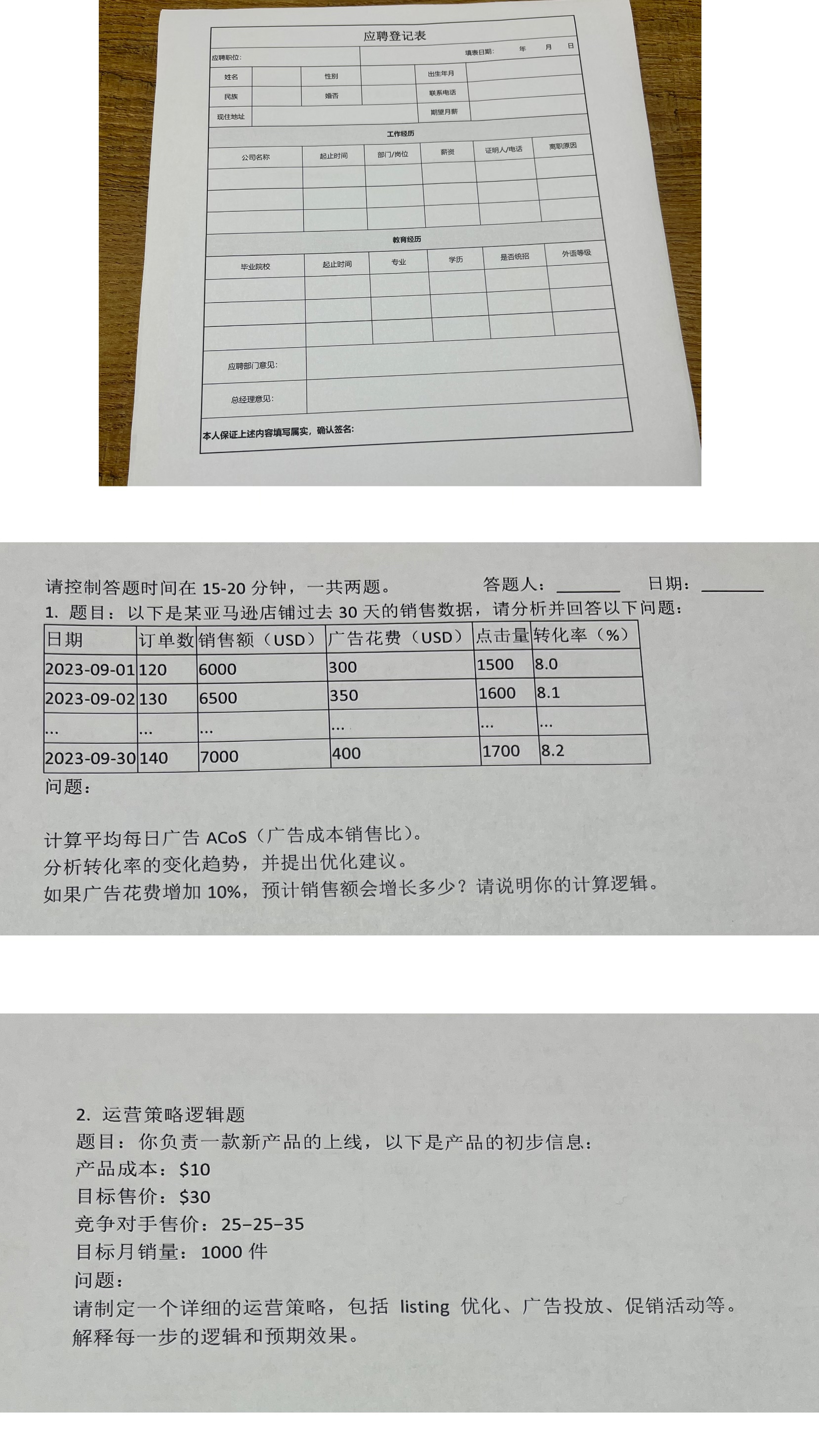 - 填完后,进来面试的好像是运营主管。注意,对方会全程录音!面试做了自我介绍,然后就问了上一家店铺的业绩和利润情况,会记录在纸上,然后问推的比较好的产品的情况也会记录在纸上,我大概说了产品数据情况,问我推品过程,我也大致说了,对方也回复说逻辑是没问题的,随后问我具体的广告推品的步骤,详细的广告打法是怎么打的,打的产品的什么关键词。很明显这里就是有套经验嫌疑了,然后我说不同品类打法肯定都不一样,也要结合市场调研分析去确定广告打法,我大概说了下红海蓝海的大方向打法,对方也觉得是赞同。后面说公司老板会做背调,看你同不同意?这意思是不同意就面试到此为止了呗?那么小的公司还学人家做背调,解释说之前有人虚报业绩之类的。也会问我上一家的薪资和提成有多少!对了,这家公司说试用期也算提成,提成点在4-9个点(老店和新店的话占比又不一样),但是需要扣除1.5W毛利的均摊成本,意思就是如果你店铺毛利有3W,那么需要扣掉1.5W,剩下的部分才算提成。第一年没有绩效考核,第二年开始有绩效考核。开始金进去到结束大概花了一个钟,只有主管面了,没有二面,对方说等后续HR会在BOSS上回复。