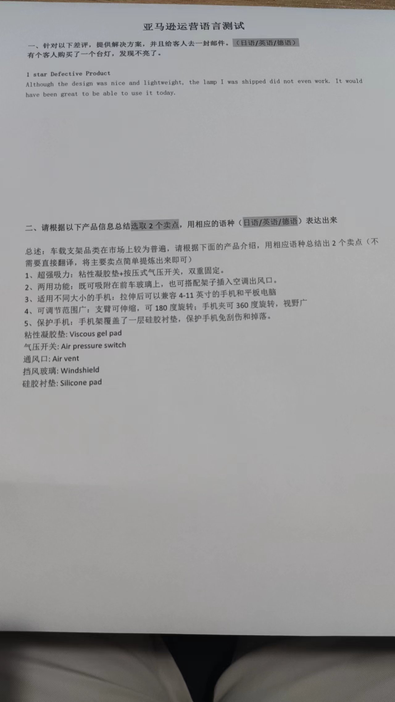 环境偏差,在一个比较偏的工业园。需要做30道性格测试题,还要另外做一份笔试两道题,当时人事只让我做了第一题说第二个太长了