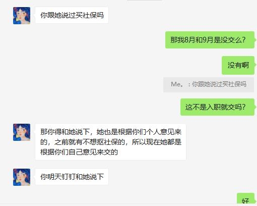 首先公司不给主动交社保,面试的时候说会交社保但是不会主动给你交,等入职几个月之后发现去问人事,人事:“因为有的人不想交社保,所以都是根据你们自己意愿交的”,问题是,大姐你也没问过我交不交啊