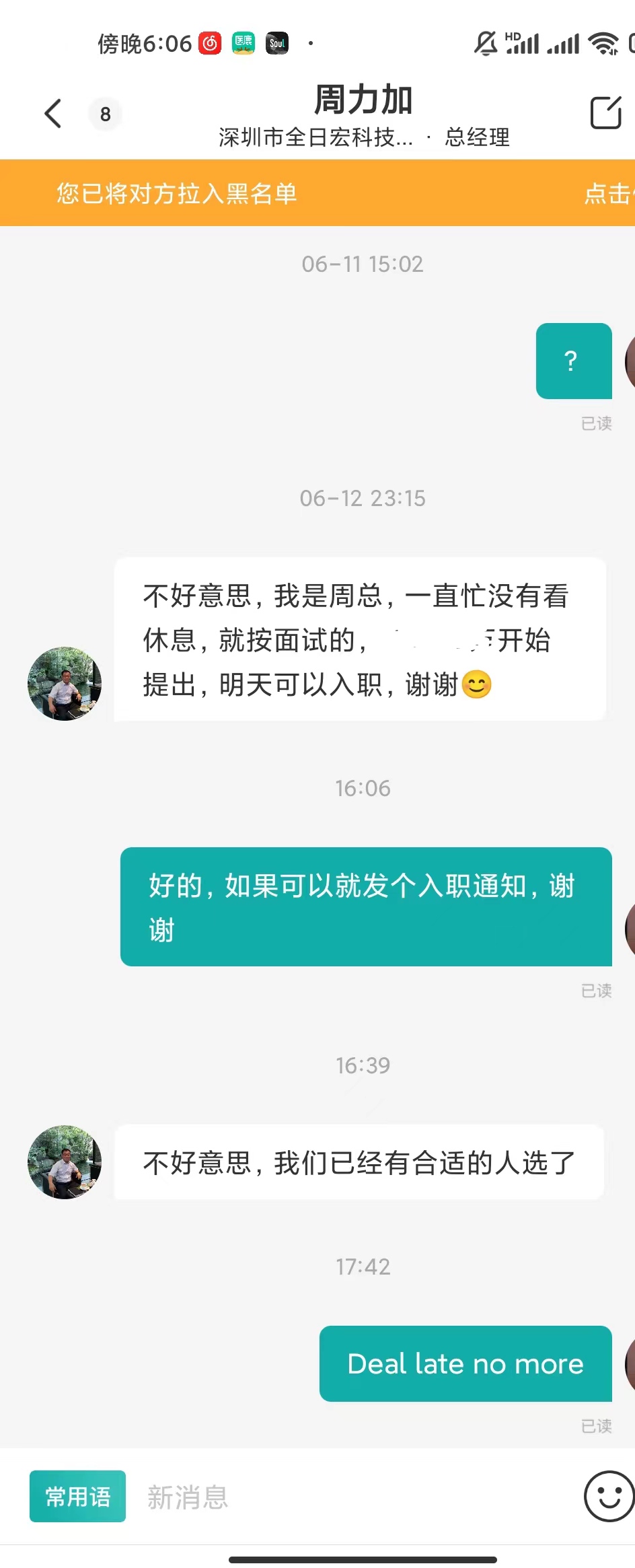 面试当天就给了offer确定x日入职,说随时联系。但等人把其他offer拒绝了之后装死,发消息不回,打电话不接,但有时间发朋友圈。