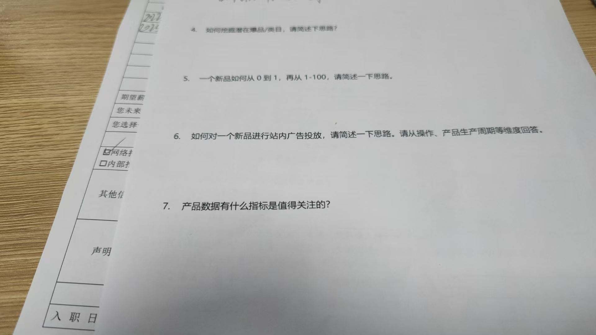 一到面试地点和boss名字不一样,叫什么莹德,然后就给我一张纸做题目,人事说话很轻声细语的。然后办公室也没人讲话都在敲键盘的。我做完题之后就让我等了一会,然后有个女的不知道是老板还是主管进来面试我,然后一上来就问我一个问题怎么推一个品0-1再到100,然后我就说了我的思路,后面她就没说话了,然后就看着我也不问问题,我们四目相对十几秒后很尴尬,然后她又问我还有什么问题吗?我说没有了,然后她就说就这样吧,也没有介绍自己的公司情况什么的,合着过去面试花了一个小时,填表做题花了20分钟。最后面试就3分钟估计都没有,就是套经验的,一直看到在招聘从年前到现在。总之面试体验非常不好,大老远跑过去不给水喝,也不尊重面试者。