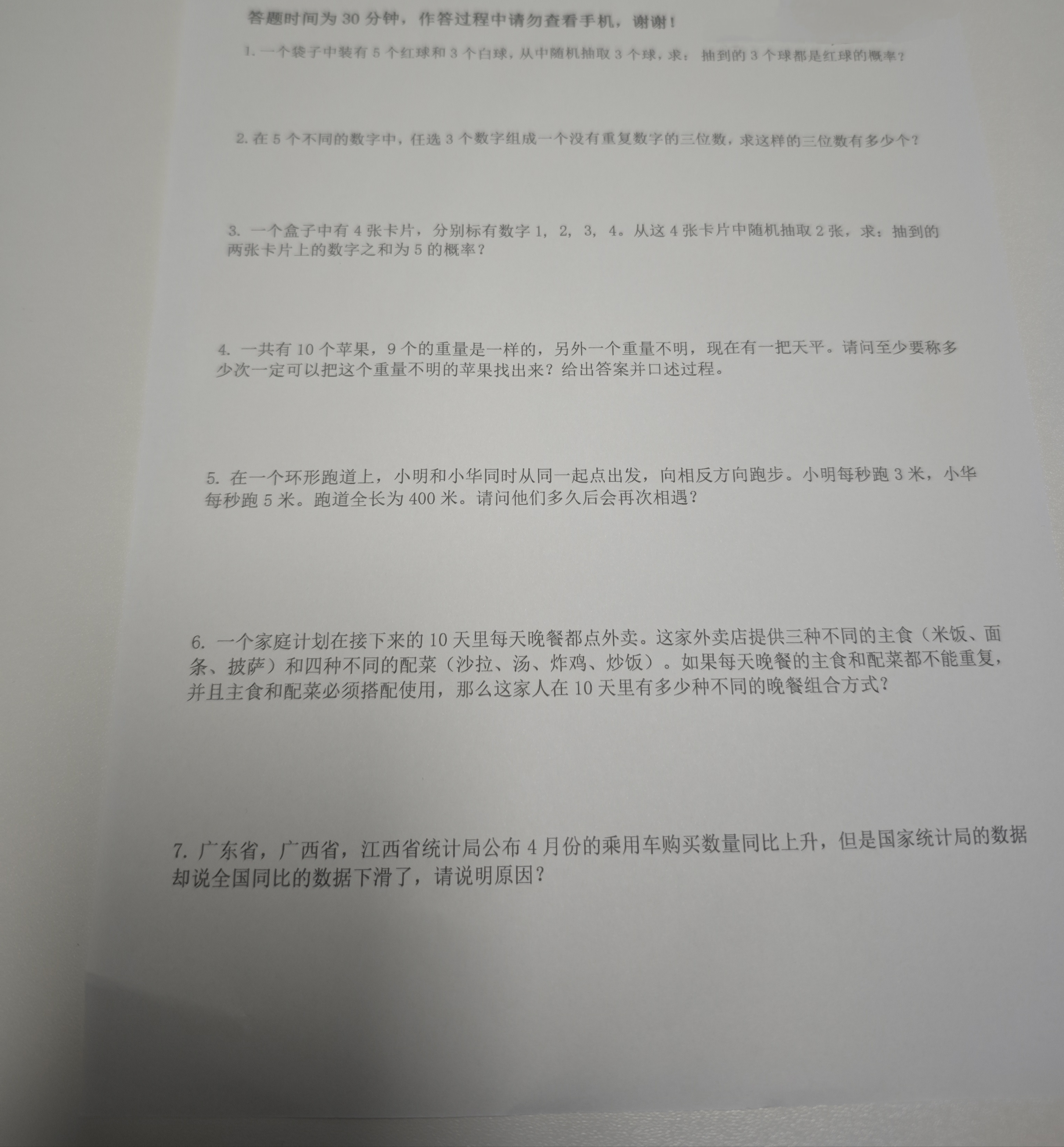 到达公司等了半小时后安排做一套数学、逻辑、行测题。