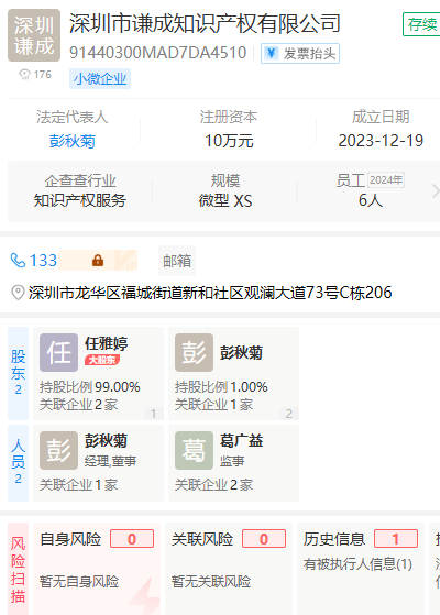 与深圳市谦成知识产权有限公司为夫妻公司(姓葛的和姓任的)