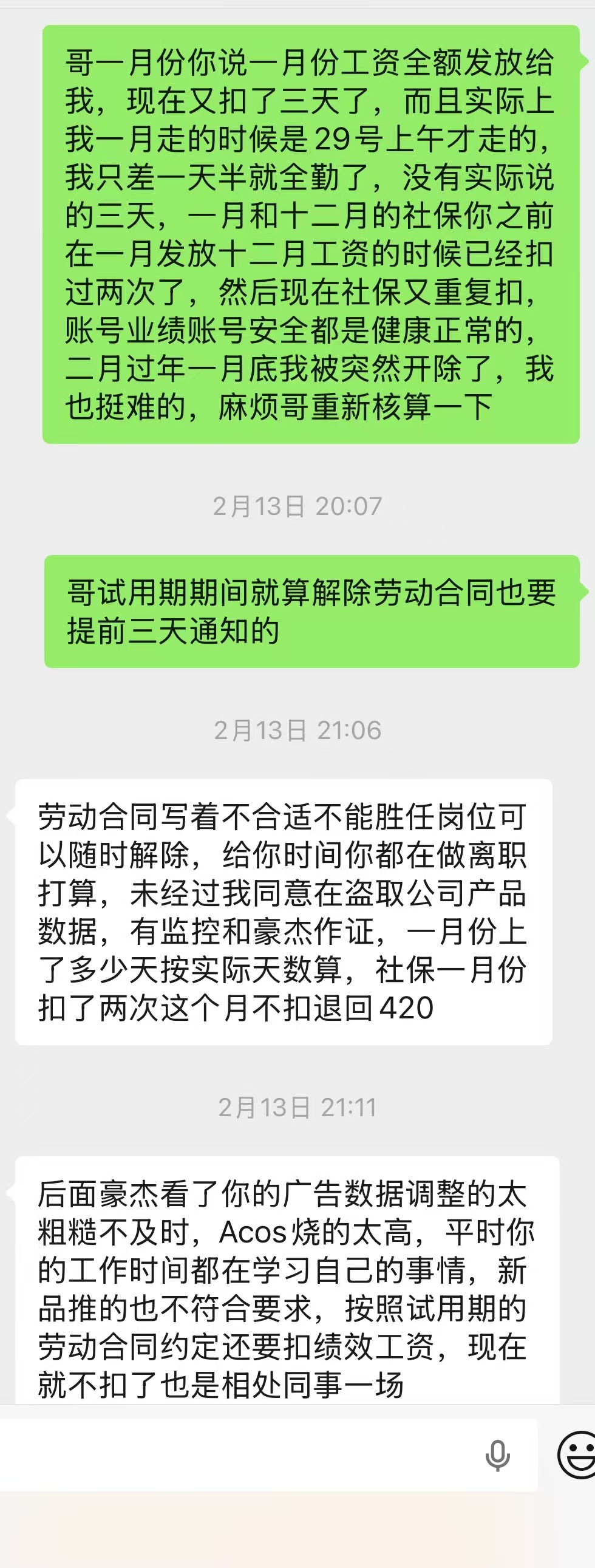 7:随意开人,凌晨四点发信息骚扰你在周末问你为什么不管工作,业绩起来又说你工作态度不认真,职场pua你,很恶心的是这个岗位开了好几个人了,开人的理由五花八门,年前把你开了骗你说这个月的工资全部发给你,过两天就发,实际上过半个月才发而且乱扣工资,投诉无门