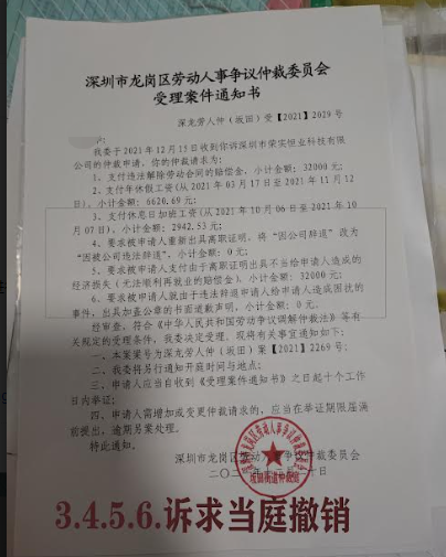 6.2022年11月24日左右(具体往上翻一下日期,差不了几天,我不想回去翻资料了)去坂田仲裁庭提交仲裁申请。