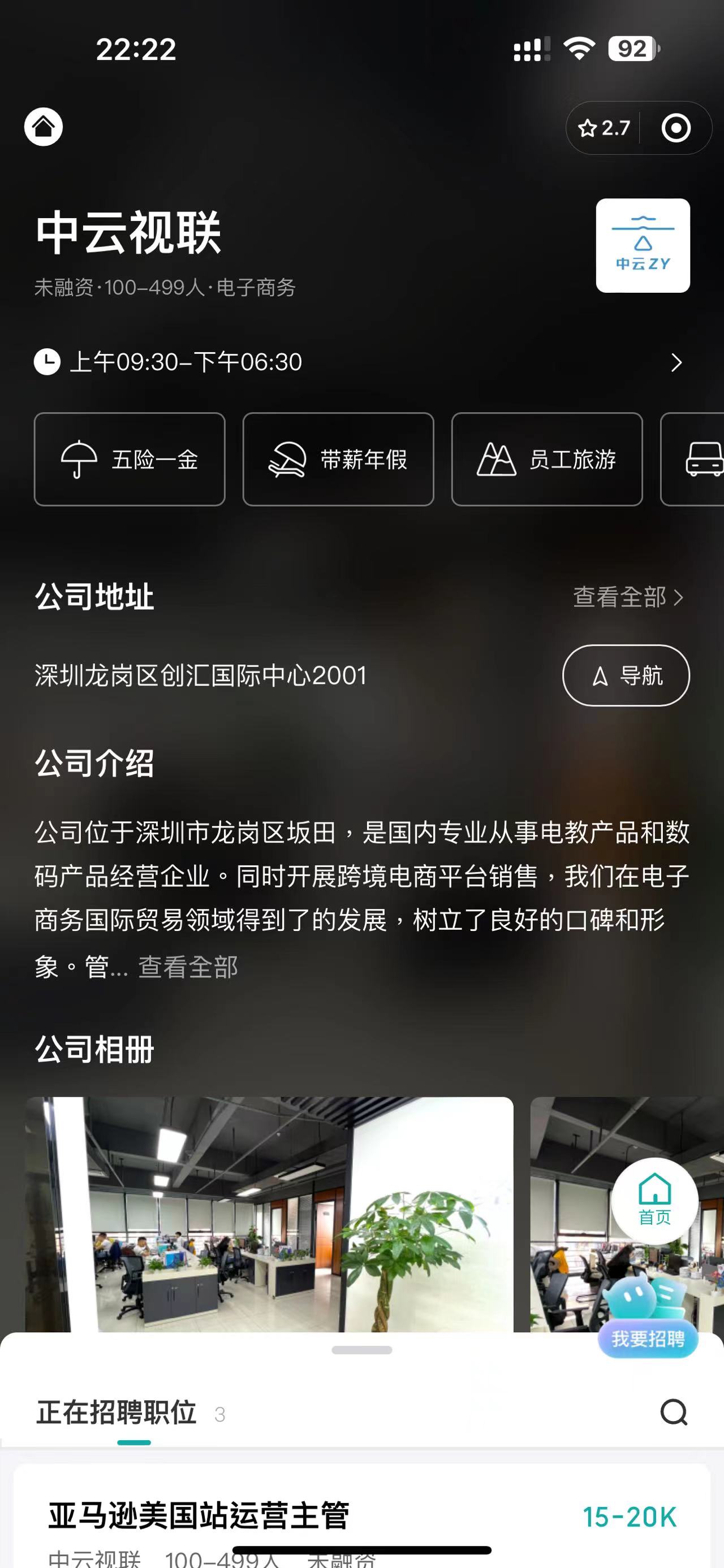 公司:BOSS直聘上介绍的是从事国内专业从事电教产品和码产品经营企业,进去了解后发现亚马逊可以说是起步阶段。