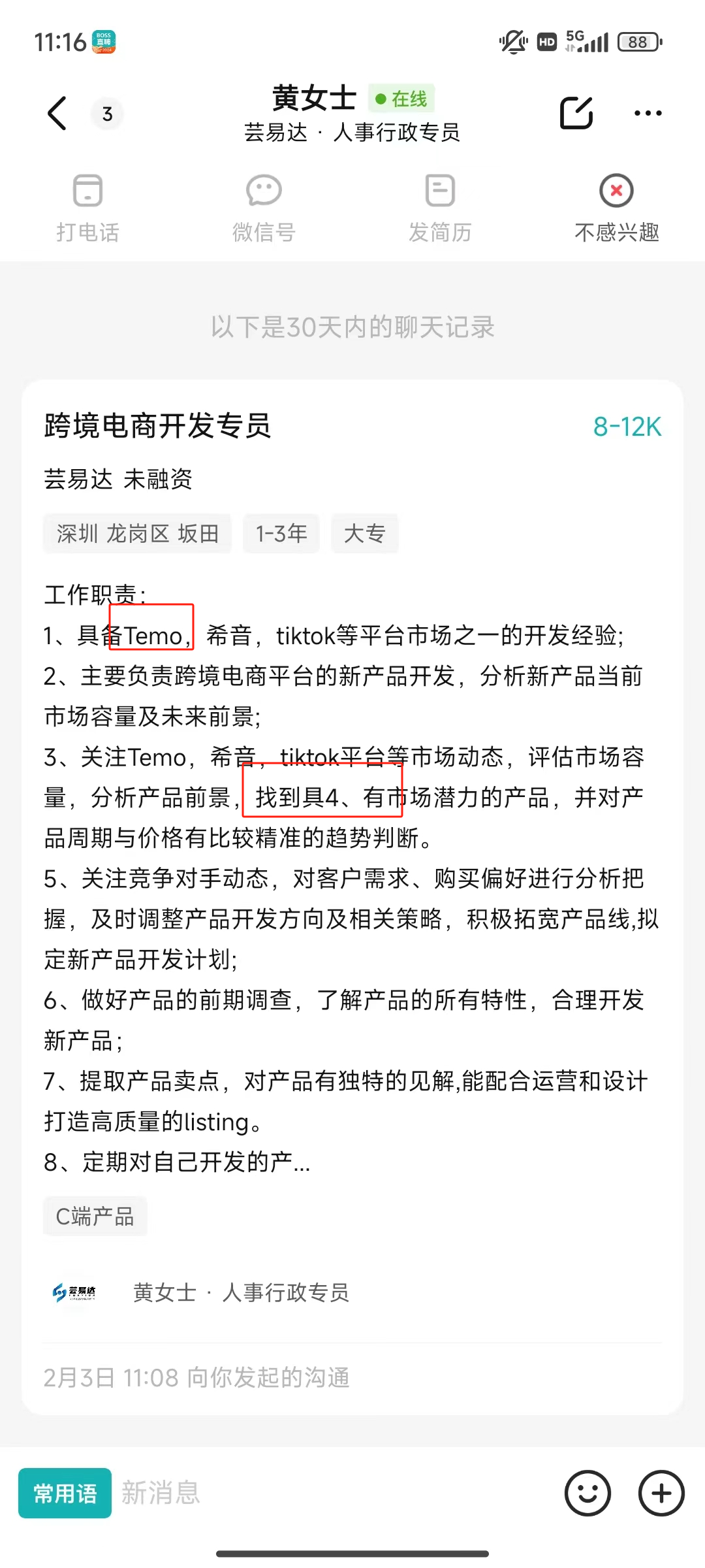 确实,这家公司老板很爱吹牛逼,真不是黑山东人的意思(如有冒犯,实在抱歉)。伙计们,你觉得面试的时候,如果一家公司老板一直吹牛逼他资源有多好多好,什么秒杀每周报每周有多少本土资源啥的,一点都不重视产品的,你们怎么看?然后问具体怎么运营?我想咱都是运营的,问要点,基本懂的都懂。他倒好,恨不得你告诉他,几天内,开启什么匹配方式,多少BID,一天调几次广告,多少预算,恨不得这么细的那种。天啊,一个老板问这种????????????结论我就不下了,伙计们自行脑部和评论即可。