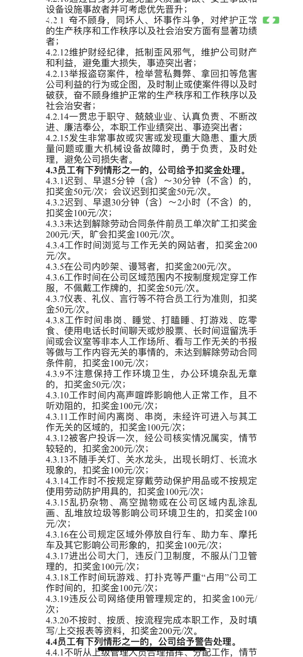3.入职就会收到4份word文档,关于奖惩、考勤和别的规章制度,一共28页,里面非常详细写了会从哪些方面扣钱(不止是运营方面,还有别的,实不实行不知道但是写了),至于奖励和奖金的界定与发放,一切以经理为准。