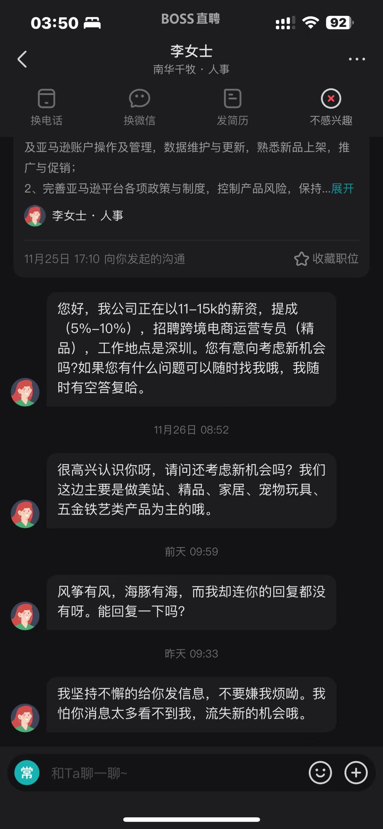 南华千牧,一个畜牧行业搞技术,搞点渔场养殖的一家公司,跑来做跨境,这到没有什么关系,主要是来深圳搞,来搞乱我们行业,我到了八辈子的血霉来这家公司面试,那个短发女主管还是经理总之是一个管理,进公司大门左手里面的一个单独办公室,22年的时候去面试,她说他们公司开品空运利润要求35%,我当时觉得遇到尼玛一个棒槌吧,什么都不懂来管理亚马逊部门,当时还说一个开4款,大精品项目,一个SKU不就备货300-500嘛,领导非常SB,记住了 一个短发女,啥JB都不懂,来混跨境,不要入坑,
