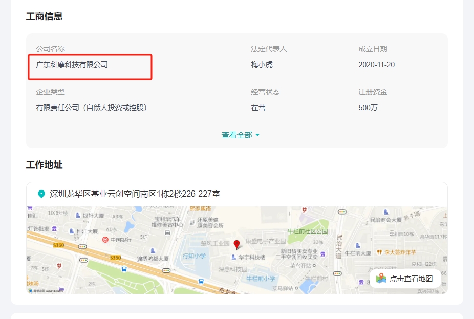 这家公司确实挺恶心,周围环境很差全是工厂,一男一女进来审问你各种各样的情况,全程黑着脸,比如问广告你必须说具体的,然后还要问你具体的数据,然后再继续问问到你不想说为止,那女的贼喜欢抬杠,她自己问的说这个方面主要要求什么呢,然后你回答了几个点,她就说你的意思是这个问题只看这两点是吧,就反问了她。看套不出什么了,男的出去了,女的跟唱rap一样说了一大串介绍公司的话术说的贼快,都不知道对着多少人背了多少次了,然后说什么他们员工升主管了,不管账号所以招人,还有一大堆很扯的,然后出去了听到在隔壁说这都问不出来啥,这已经跟他们说的够多了。然后人事来了就敷衍了一下,自己也不想搭理他就走了。因为用的广东科摩科技所以之前没查到。