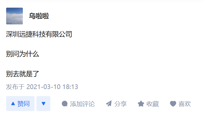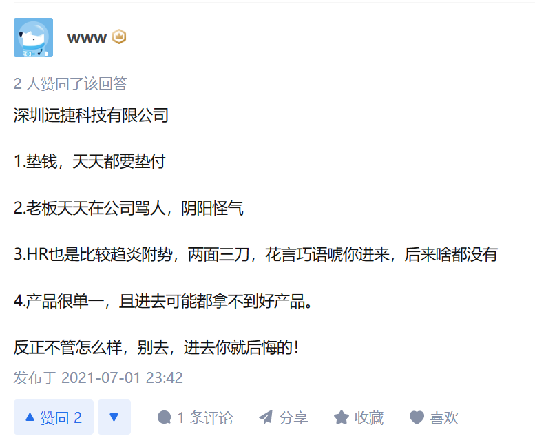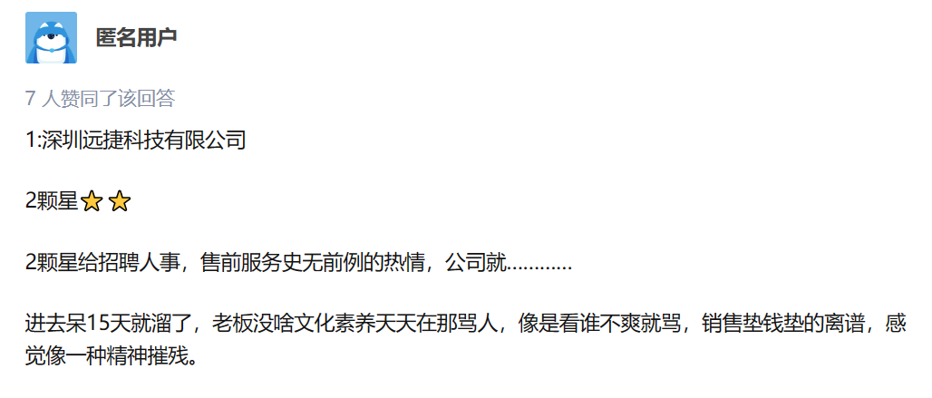 远捷这个黑名单的水准是真高,别的公司是那种情绪性的短短几句话评论比较多。好家伙!