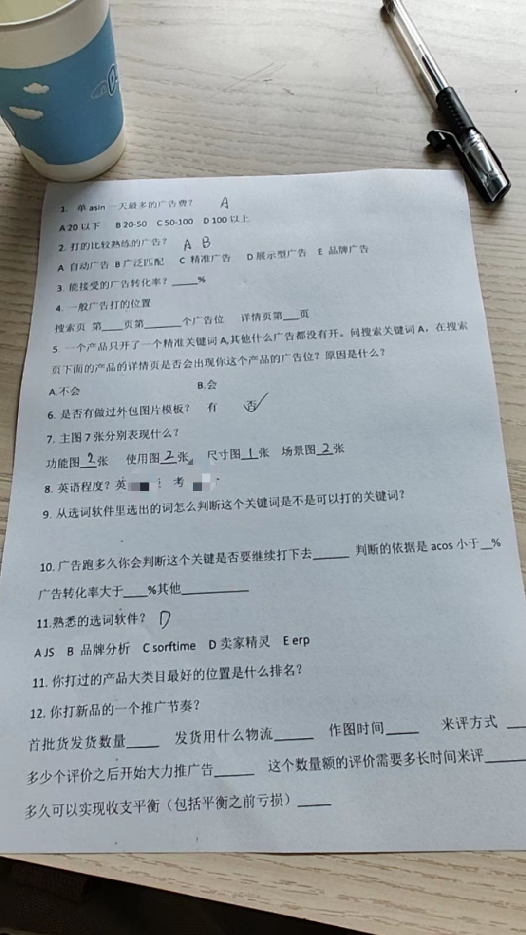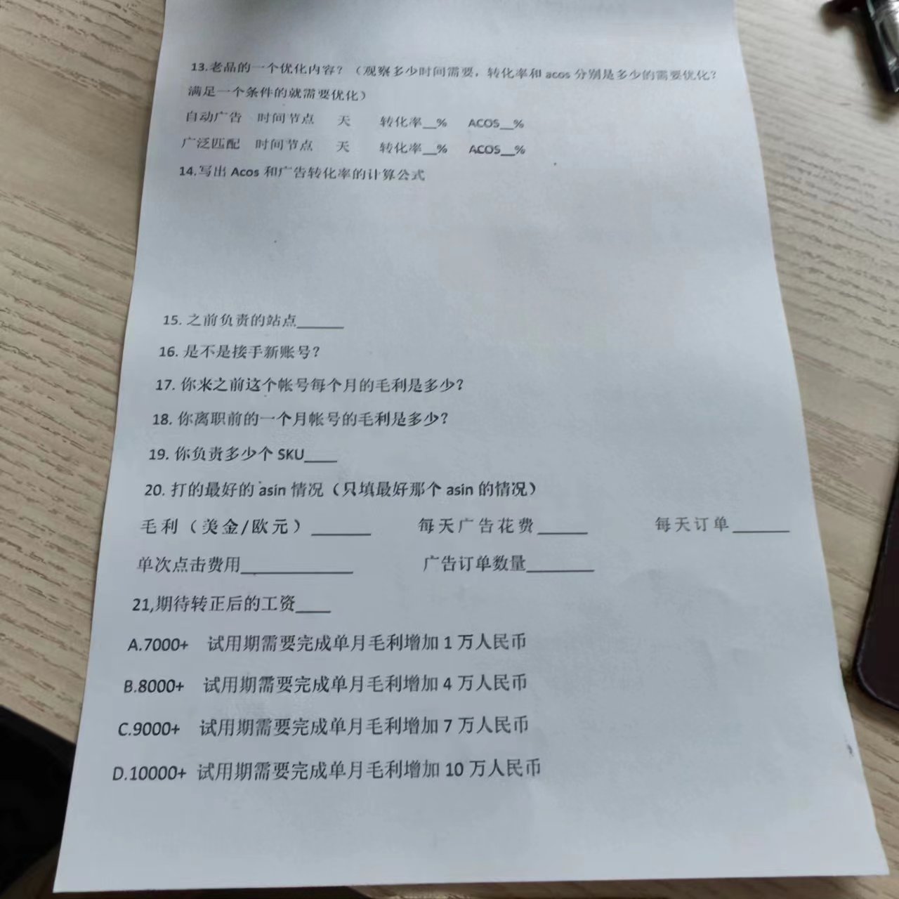 负责人面试的:我来这里看到若比邻网之后冒险去面试的,很无语,填了21无脑题。 说什么广告要重新学,精品还说全类目的,这样不是就是精铺吗,还说一个sku每天花400美金,我怕你在我工资里面扣。办公室压抑死人,没有人一个说话的。说到薪资问题,都不给我讲,说他没权知道!