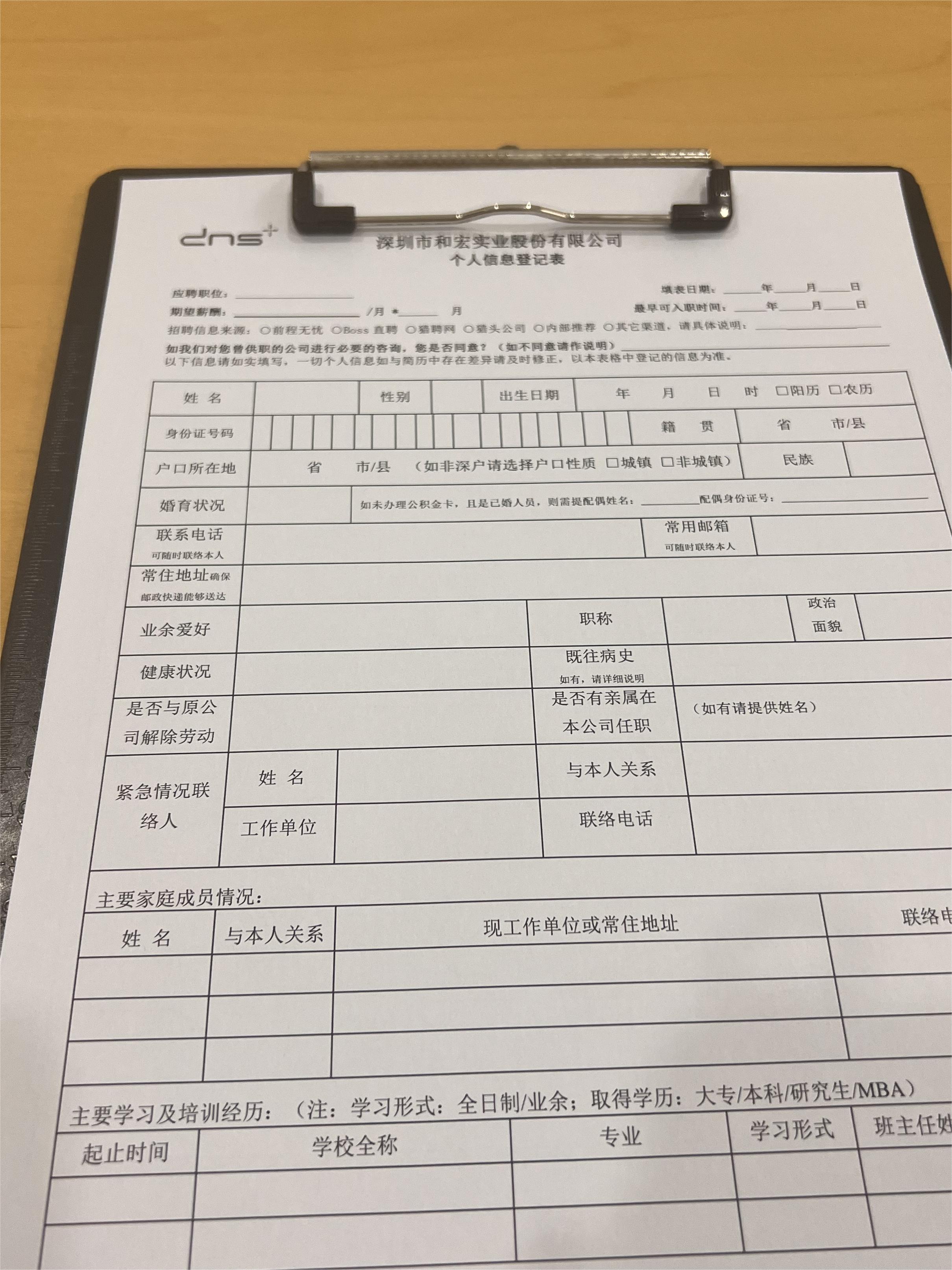 面试:先到前台拿一张表格填详细信息,特别详细,我还要去问同学你还记得我们班主任的名字吗?还要去查前同事的联系方式。