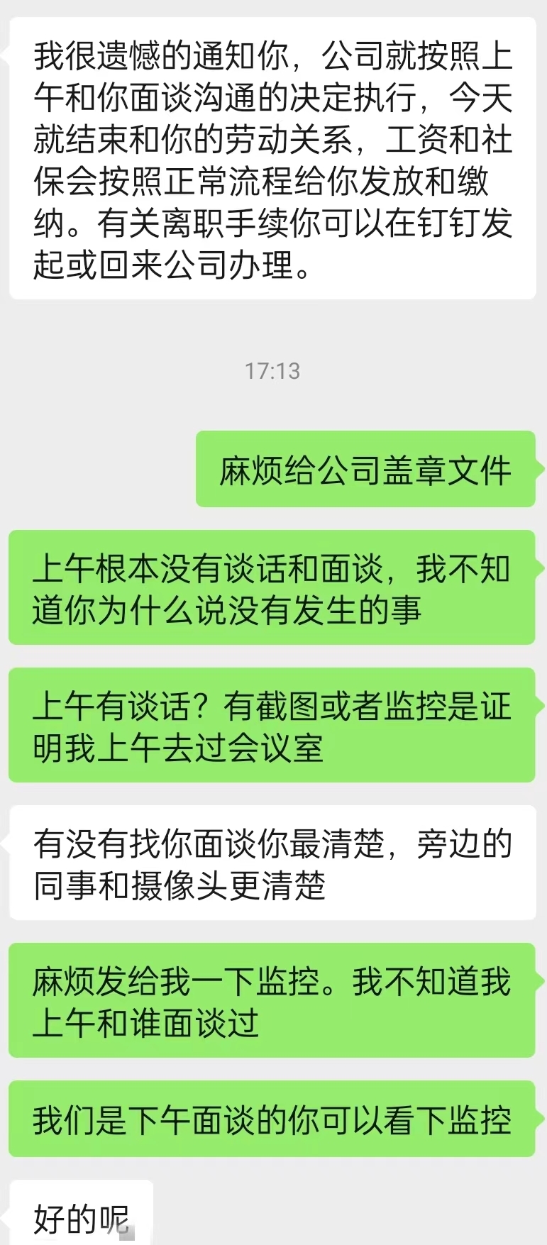 我说我都被踢出群不能打卡怎么工作?他说总有办法,你考核不过我们再辞退你,解除只有两个条件:辞退和自离