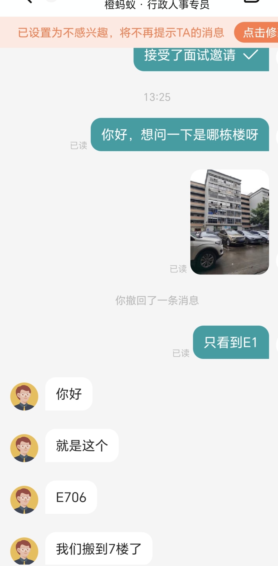 • 一个小公司来着,在Boss上面聊着感觉挺真诚的,就约了面试。Boss上面的地址不准确,跟着手机导航、加上问路人才到了楼下。在一个破旧的工业园来着,在楼下找不到上去的地方,后来问了一位路过的男生,跟着他从货梯上去的,货梯也是比较破旧的。进去货梯后才告诉我公司搬到了7楼(这个不是提前就应该跟面试者说的吗),整栋楼没什么公司,旧是一回事儿,但环境还不算干净。约的下午2点面试,我1点半就到了,他们也是下午1点半才上的班(记错了他们的上班时间,由于通勤时间有点远就提前那么早到了)。在公司门口徘徊了一会儿,想着来都来了(坐了二十多分钟的公交+走了十几分钟的路)。最后决定不面试了,位置有点偏、办公环境不太好(这个我是比较在意的,毕竟公司是一天待得最久的地方,个人还有点洁癖来着)。比较吸引人的点,是双休,当时是奔着这个点去的。办公环境,详看图片