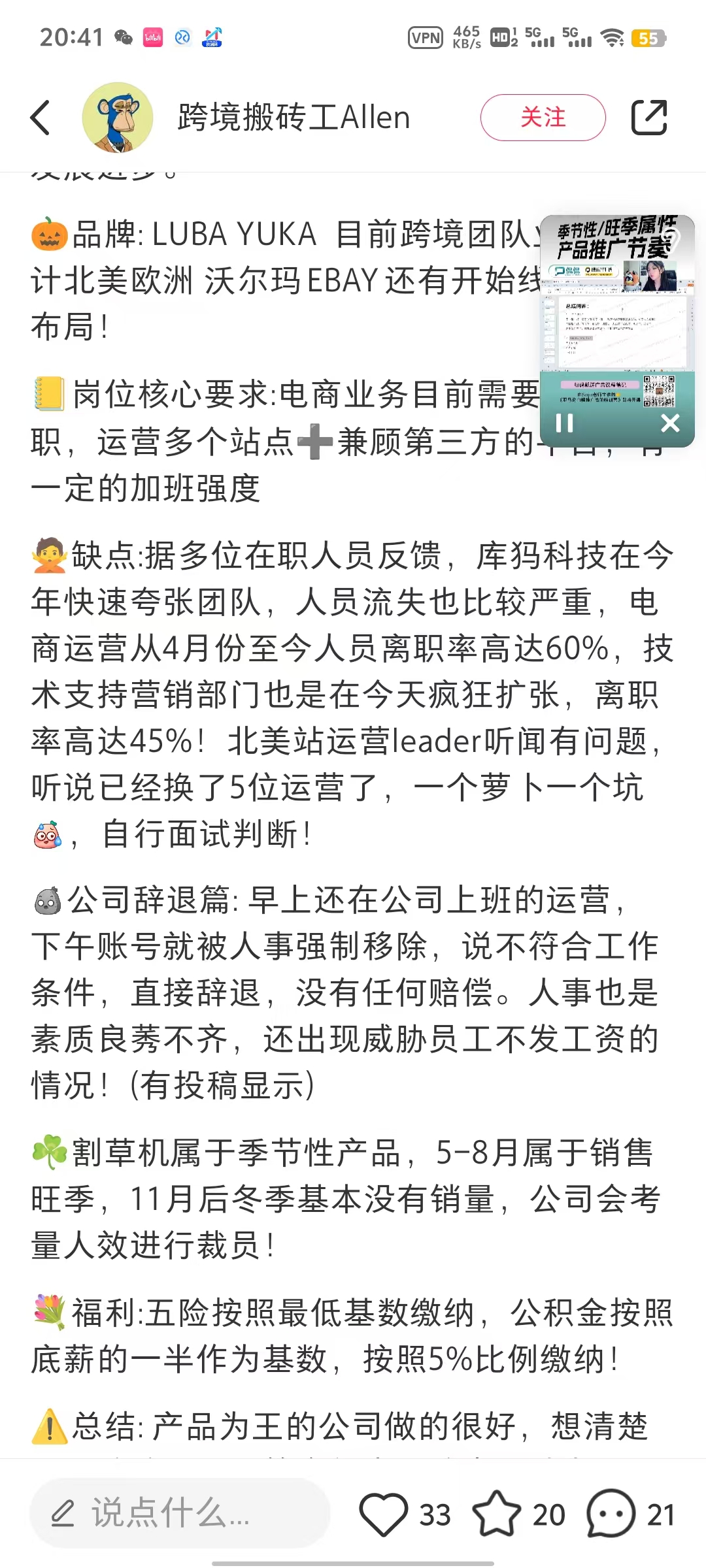 这公司还是有点手段啊,被删了!hr给我打电话定薪的时候我问过她网上的评价,她说信一半不要全信hh,第二天居然就没了。是个博主发的,但是又删了,别人入职过的反馈写的是疯狂招人然后试用期无故辞退人!说什么上午还在公司下午账号权限就给移除了,夸张,不光运营岗产品研发岗一样。