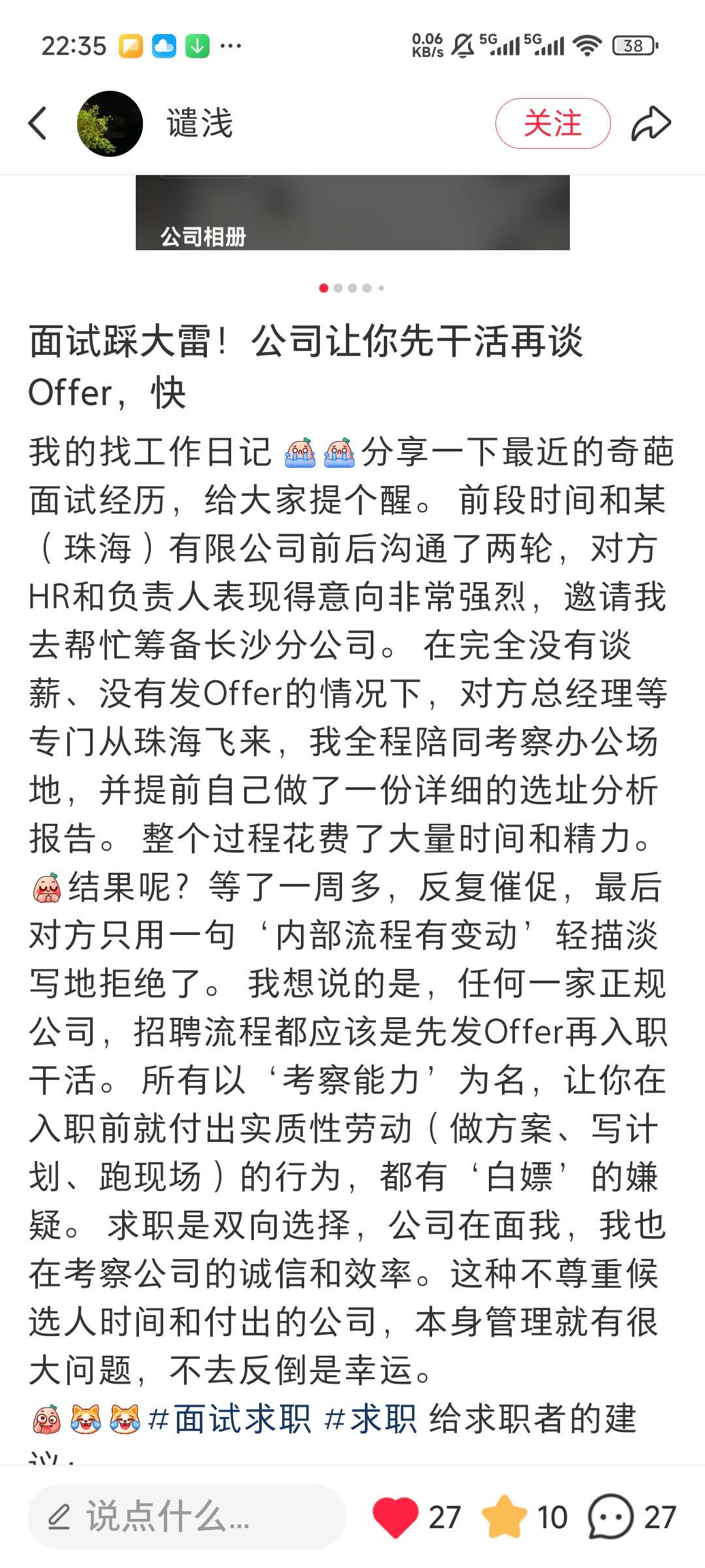 这几年很多外地公司来深圳开分部,所有就没有仔细问是不是在深圳上班。boss上发了简历,电话也聊了,约面试的时候告诉我办公地点是珠海,公司提供住宿。excuse 异地招聘,你写清楚办公地点啊