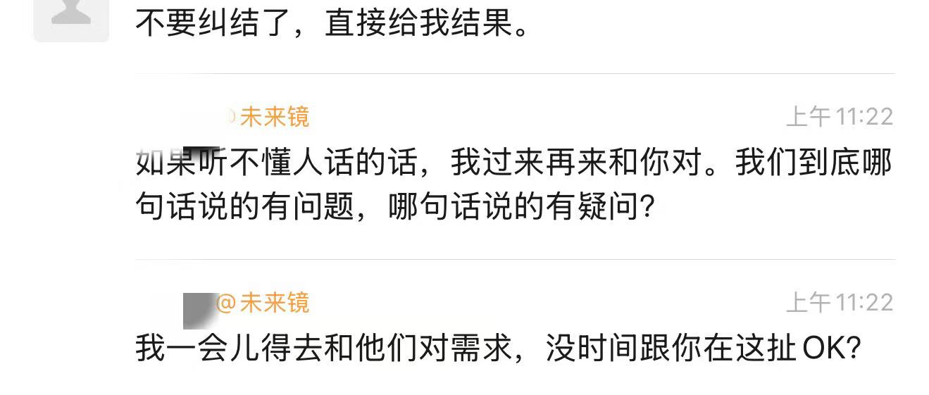 老板和手底下的核心团队,虽然格局小,但是有常人所没有的自信,这一点是很让人佩服的。未来镜觉得自己的产品简直是所向披靡,无视用户、合作商、以及内部员工提出的问题和建议;他们觉得:“那不是我们产品的问题。” 实际上在海内外,用户关于产品的争议一直都有,产品确确实实是piece of shit,老板美其名曰主打美学和情绪价值,其实自己的产品也有抄袭嫌疑;作为音响和耳机的品类,拒绝所有科技测评类的合作,因为心虚产品音质不过关遭不起推敲。