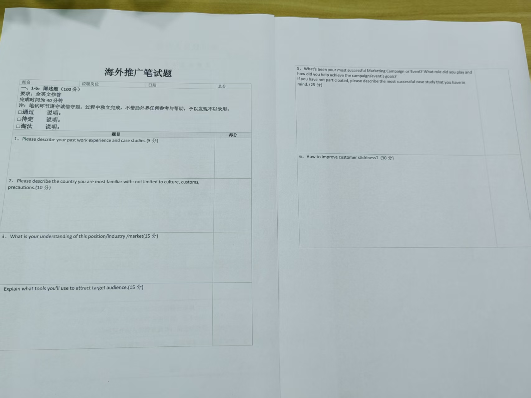 面试:人事聊了一会,没做题。然后就是老板开始噼里啪啦的开始面试,网上写的薪资也跟HR沟通过了,说可以给到,去了之后发现这公司要从0-1开始做起,而且老板还是那种老一套思维方式,做展会,做社媒,拍视频,个人觉得很困难。而且还要求英文口语非常流利。当时问完他的回答,就觉得无药可救,今天又看到那个职位放出来了,估计招了个垃圾,然后用了几个月不合适,把人家辞退了,又开始招人了。在深圳招聘,钱给不到位,什么都是白搭的,15K还想招一个非常厉害的人,以为这里是四川啊,还是醒醒吧。
