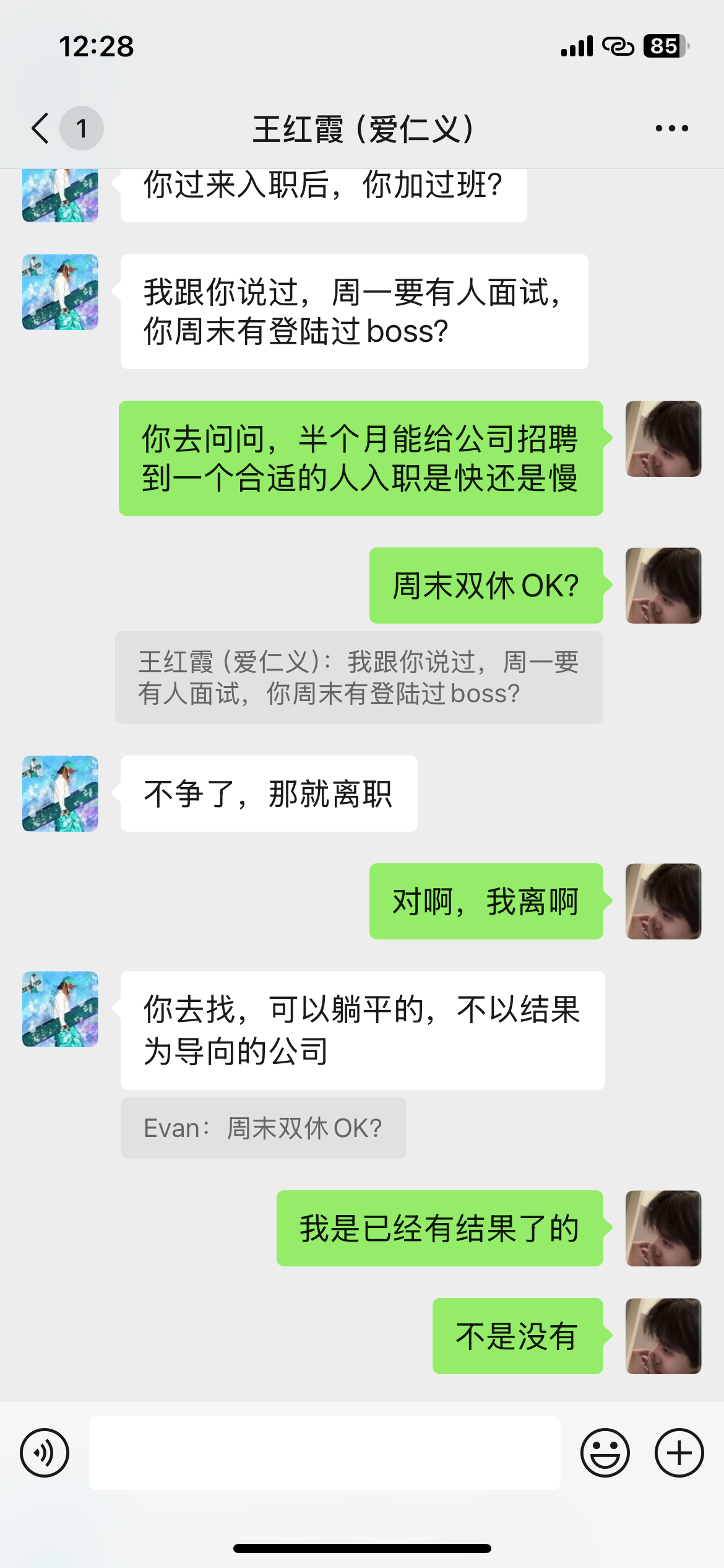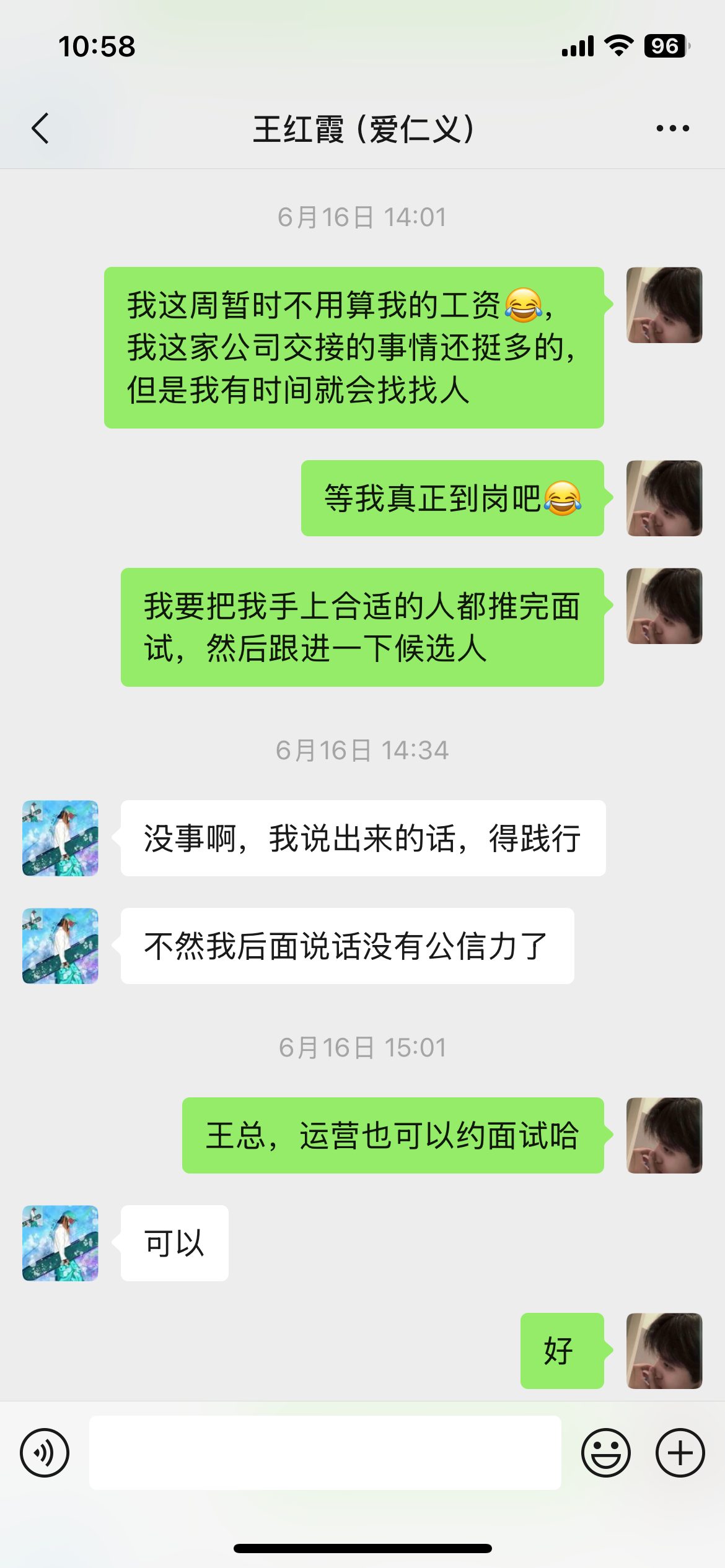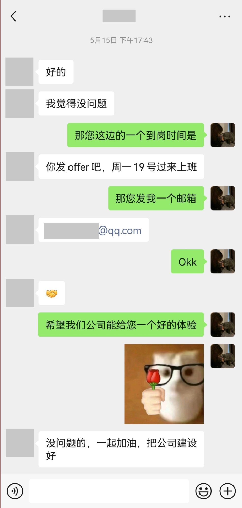 最后还是要对王总,肖人事道个歉,确实我有不对的地方,我放了鸽子,这是我的问题,但是你们也要反思,一个是你们流程是有问题的,第二个就是创业一定要有胸怀,和气才能生财,第三个就是要真诚,不是我不尊重你们,是您们不尊重我,我又不是应届毕业生,你们什么想法,难道我看不懂??