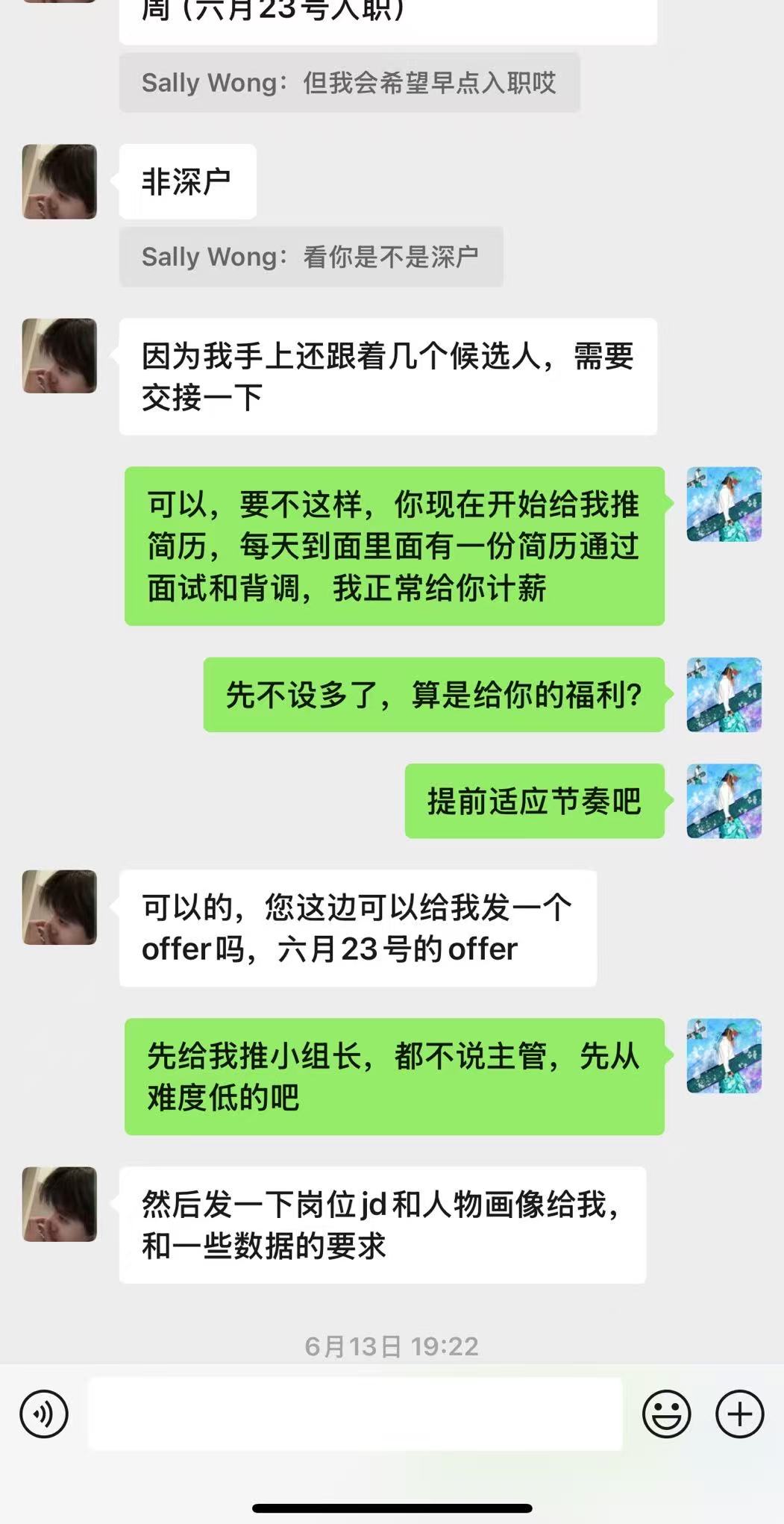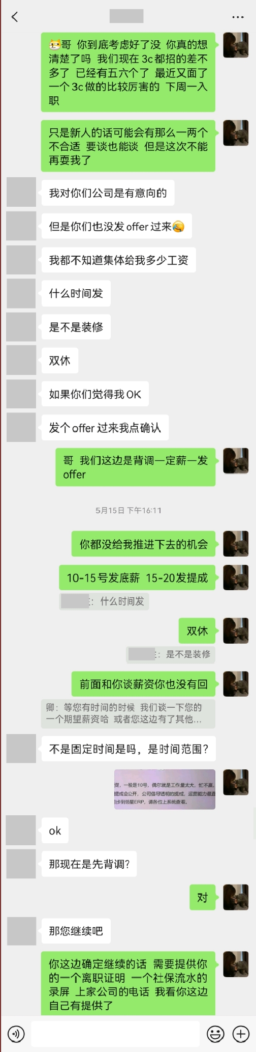 6.您不能因为公司拒绝您入职 您就道德绑架我们 第一次 面试后当场告知您面试结果是通过的 添加您微信 您一直没有通过 大家都是成年人 您这个难道不是变相拒绝吗 第二次 您来添加我的微信 说想再和我们公司谈谈 ok 我们这边答应了 在推进的过程您这边突然不回信息 是什么意思大家都心知肚明 也不用我多说了吧 隔了两天又冒出来 询问我们这边还能谈吗(详情可见图2)第三次 我们这边给您正式发了offer 在入职的前一天凌晨晚上您这边答复说 综合考虑一下不考虑我们公司了 第四次 您还想和我们这边谈 我们已经很难相信您的诚信了 您真的觉得我们套经验 为什么要回头找我们呢 (详情请见聊天记录)