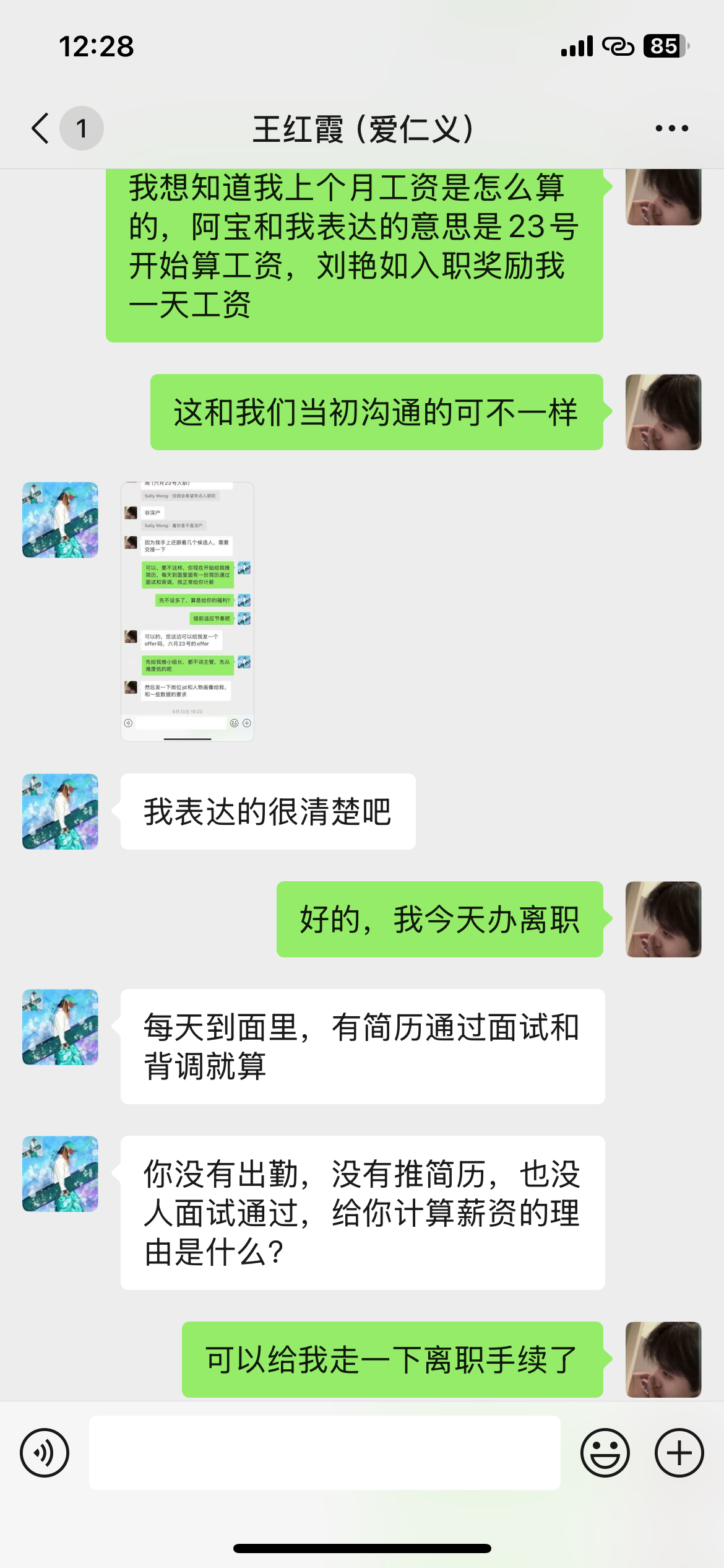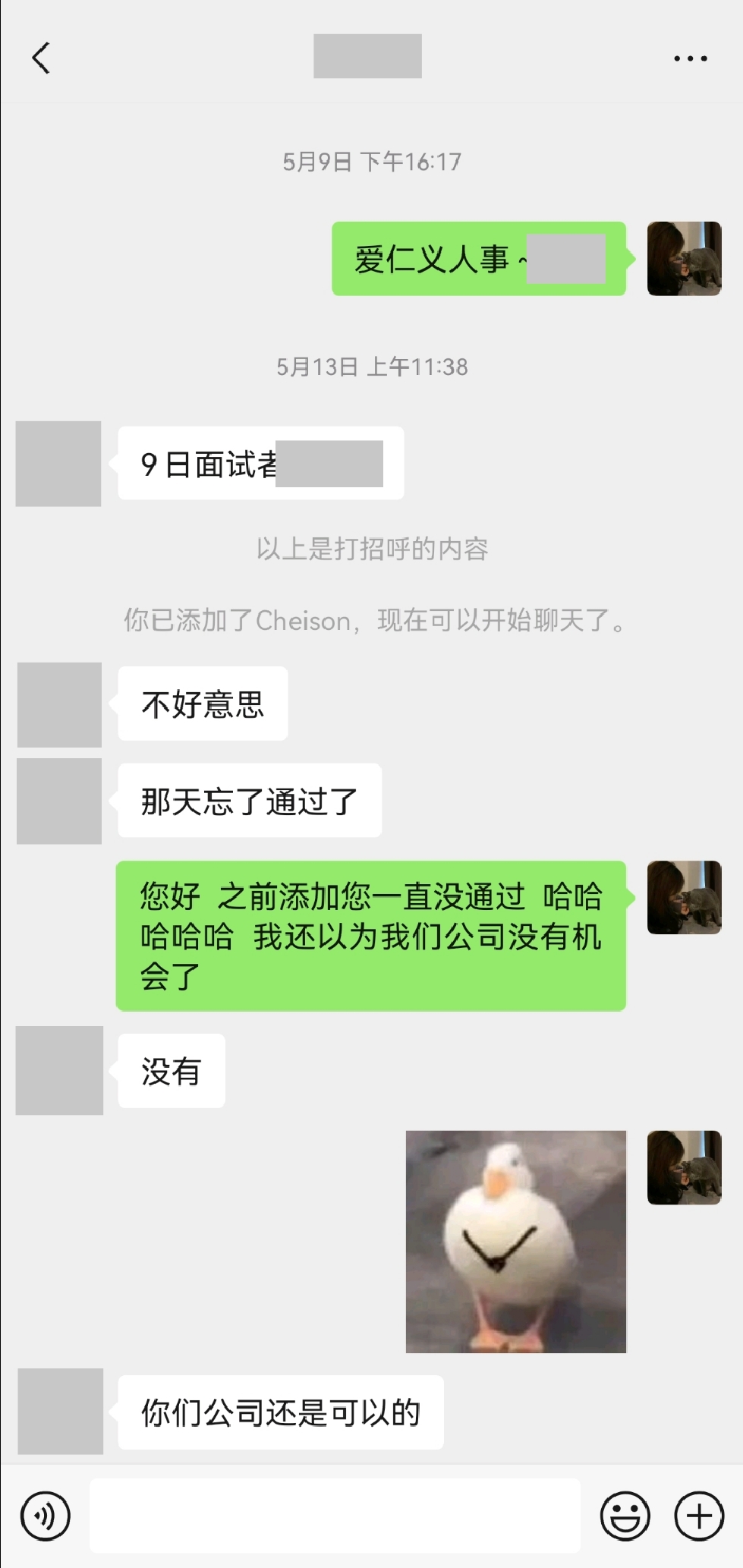1.面试完公司当场给了结果 并且也添加了您的微信 是您这边没有同意 导致我们这边也不能推进下去(图1聊天记录可以证明)