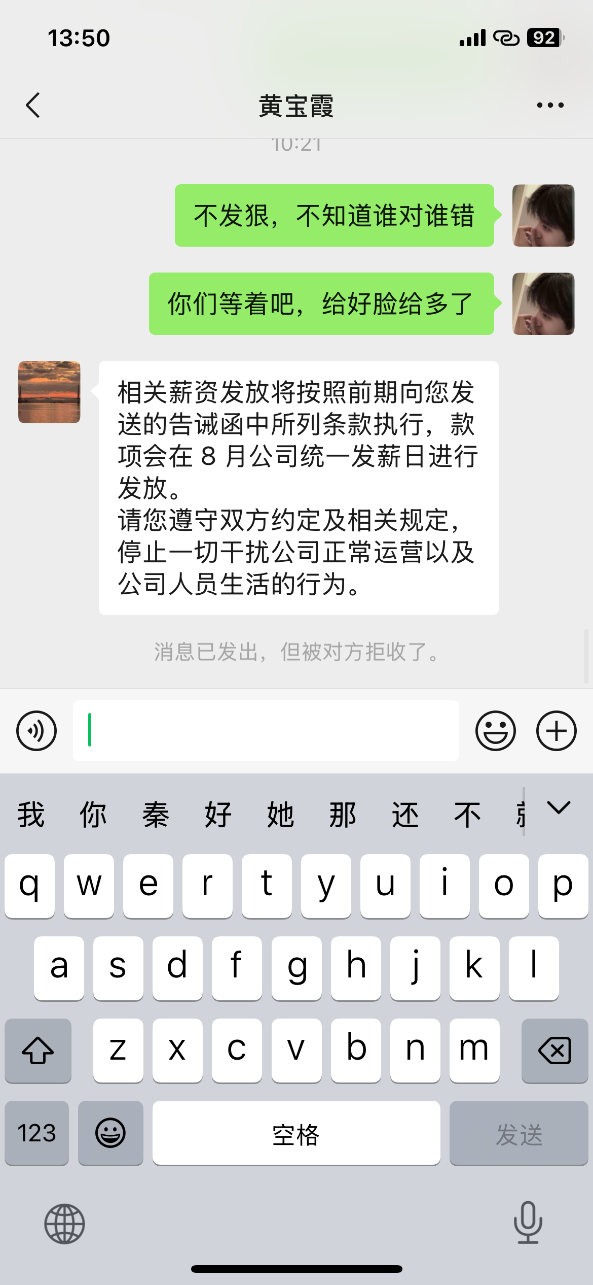 第二:我什么时候收过你们任何的资金或者红包?你为什么无中生有,请告诉我,我何时收了你们红包?你为什么年纪不大满嘴谎话?请把我收你们钱的记录发出来,你以为这样子虚伪就能吸引人过来入职了吗?搞甄嬛传那一套是吗?如果你再继续如此说谎,我会报警去你们公司讨要说法,让你们同事和邻居看看你们热闹,我非常乐意