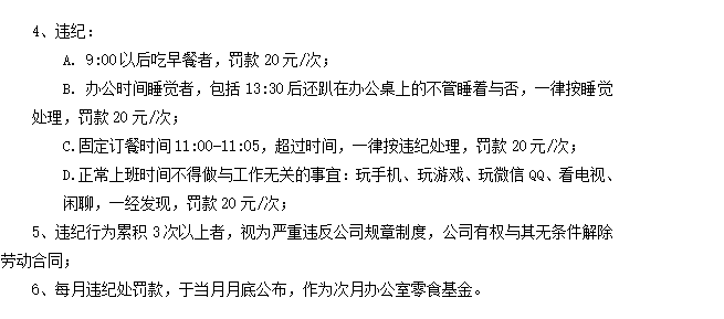 7、9点过后吃早餐扣30一次,9点过后就开始盯着你有没有吃东西。但是人事自己却经常过了9点还在吃,巨恶心人。