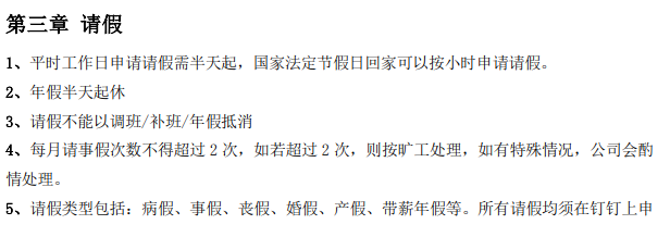 4.年假就三四天,请假还不能超过两次。我们年假都是15天,你有问过同事每年的一个放假时间吗?没有吧,就在这里一吐为快,请假不能超过两次,我已经附上了公司制度,你也签字认可过,我不想多说什么。