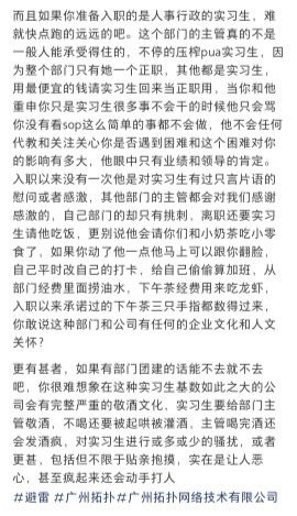 6、实习生不当人:实习生很多都是985,211,优秀的本科大三大四的学生,实际来到公司基本也是当螺丝钉,工作量干不完,给你画饼,反正有贡献的老员工都会被卸磨杀驴,实习生或者应届生还能有什么盼头,1个月学完就走得了。对了 ,不上满3个月,工资只有60-75一天,剩下另一半餐补,必须上满3个月才给
