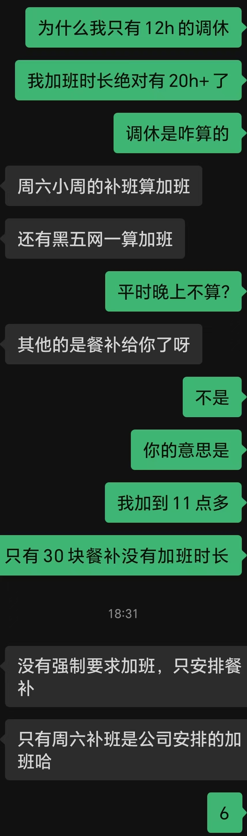 然后!你拿这个工时去调休,不是按8h一天调,按他妈10h一天调,默认你加餐补时长!