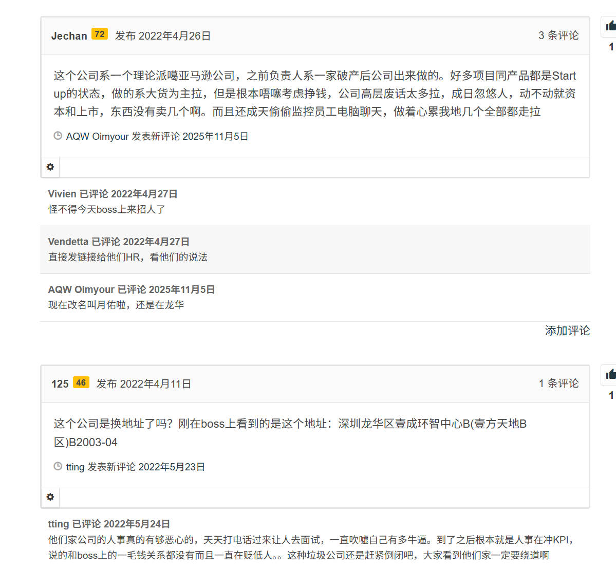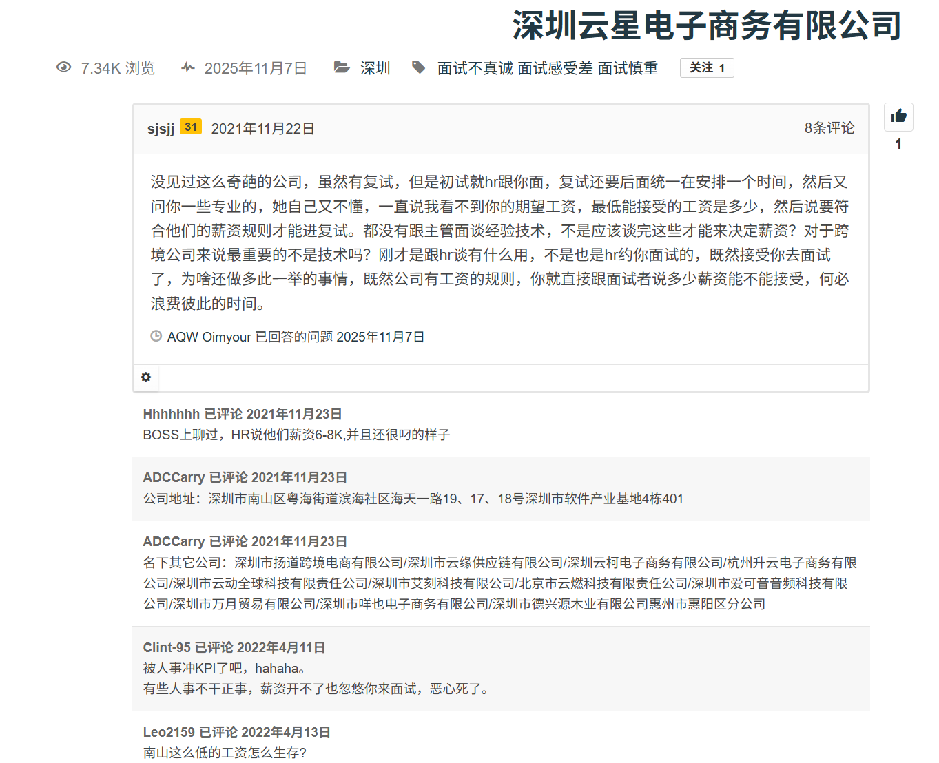 原来的深圳云星电子商务有限公司,因为合作商闹掰了。三个老板里只有一个负责运营,原来喜课讲师出身,从老板到管理没有一个能上手实操链接的, 全靠想象的理论,动不动就是上市,实际上公司有没有三十个人都不好说。不给提成,提成制度一变再变到最后不知道提成制度是什么,财务给运营发的报表不准,第一遍发的是错的,想要提成就要再核算,再核算就是负业绩。老板尤其是会PUA,讲话就是绕圈圈把人绕晕了,实际上完全不符合逻辑,遇到有逻辑条理清晰的人就会破防。遇到问题只会拖,拖着拖着就没有问题,老板管理张嘴就来,不拿奥斯卡都是屈才了。