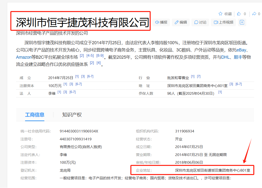 这和 深圳市恒宇捷茂科技有限公司 的地址是一致的