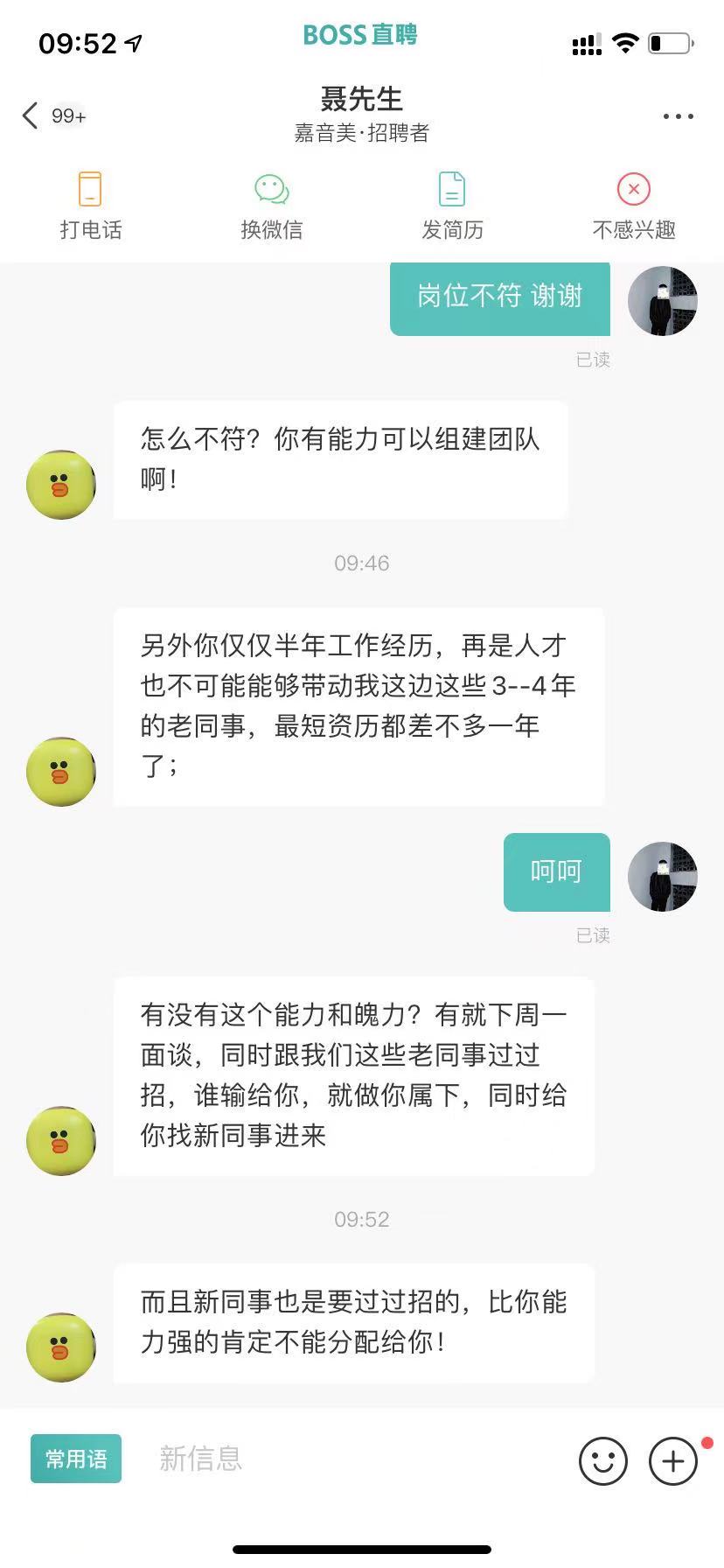 而且这个公司发给过很多次打招呼,估计都不是真的想招人,直接三连举报