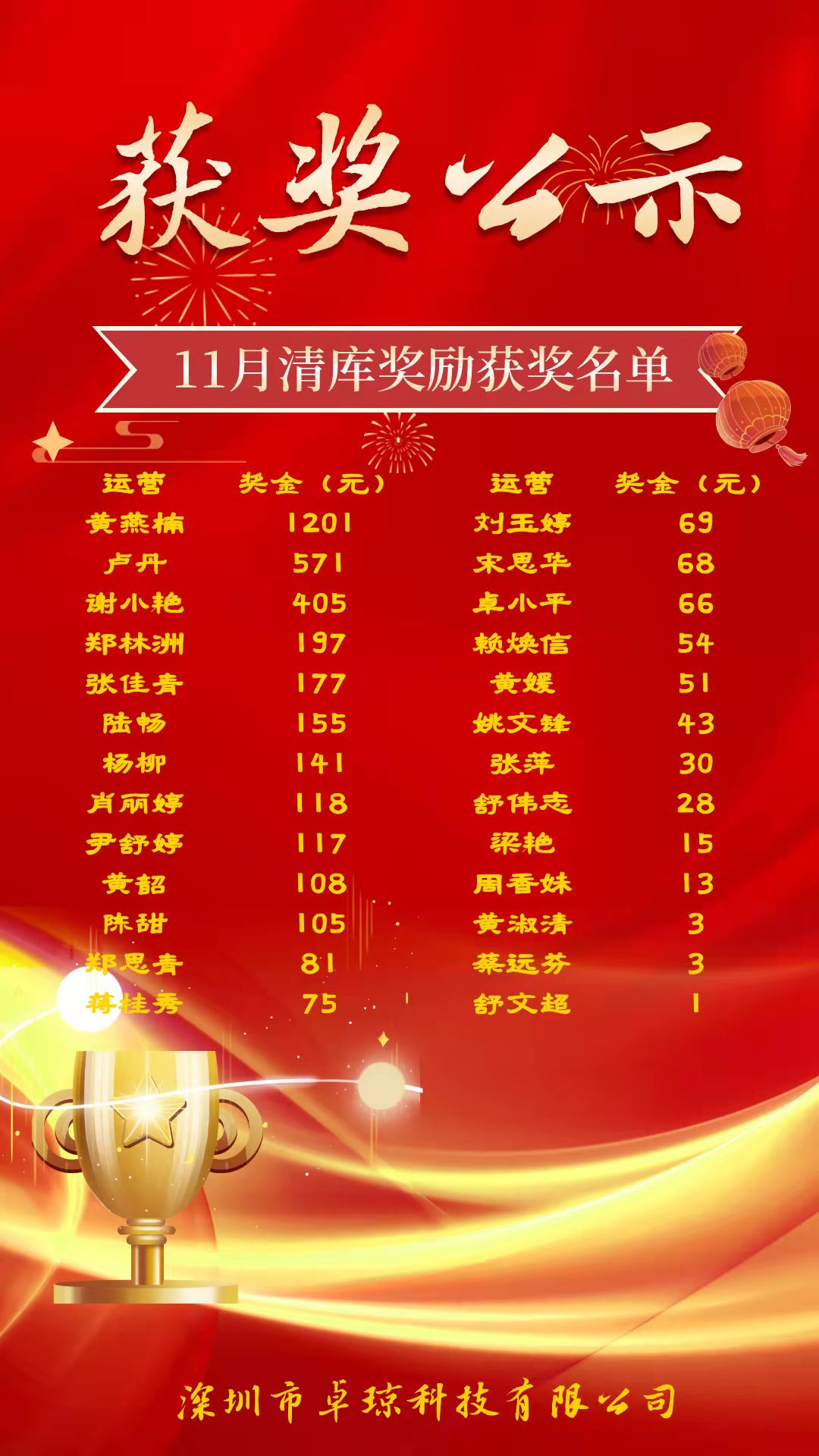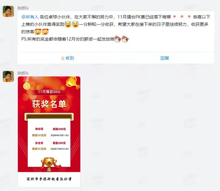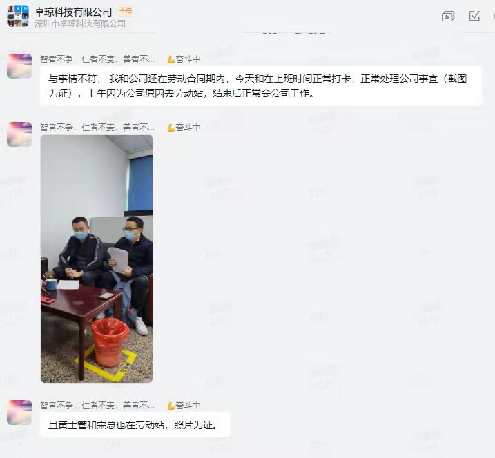 大家好,我是黄诚,我是卓琼的人事主管,看到这些图其实我是非常的痛心,我在公司一年多的时间了,当然了,公司从外地搬来深圳也不过短短3年时间。我承认,公司有很多不完善的地方,但是这些却被别有用心的人利用了,哪怕是好的地方。图片发的奖励,一元也是要发,一块钱也是人家应得的奖金,有奖必发难道不是一个企业应该要做的嘛?请问,这个发图片的人,公司有少发你一分钱的奖金和工资嘛?还有,你把公司所有获奖的人的名字发出来,你这是什么行为呢?那个处罚通知,你不知道实情,所以你发这个是个什么意思呢?早公司没有给她发辞退通知的情况下他自己去了劳动仲裁,然后是不是应该请假呢?为什么还要来公司打个卡再去劳动仲裁?根据公司制度,难道不应该记做虚假打卡?请您立刻删掉这些人员名单还有本人的照片,否则,我们将保留一切合法追究法律责任的权利。有什么不满,冲我来。