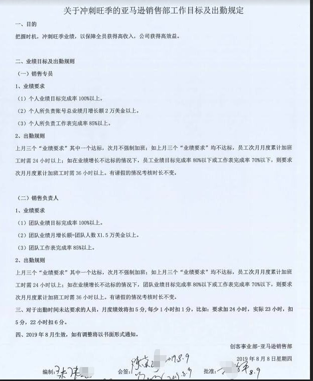招很多小白(包括很多应届毕业生),底薪非常低,其中一个离职的hr跟我说根本想象不到这种薪资还能在深圳生存,帮着公司打压薪资良心都过意不去。这些销售助理的转正考核也极其严格,提成也非常低,活脱脱的上架工具,广告也不能自己弄(做亚马逊不能自己弄广告??)。加班3个小时以上十分钟的迟到免责。这个所谓的“福利”我是真的笑死了,加班三个钟,十分钟的免责??!!加班文化也十分严重,到点走害得被组长拉出来在会议里说,跟人事要了一个打卡记录表格说,一位陈姓高个女组长双标严重,早走就说大家都这么晚你干嘛早走,加班就说“回到家睡醒一觉又上班了,有意思么,要提高效率。”经理助理也是以为自己多牛逼似的,态度恶劣,自以为是,明明是个服务岗位,还在那不耐烦,耍脾气,弄个账号跟个鸡婆一样。就因为是“经理”助理?狐假虎威,自己没任何本事,只会打杂还不谦虚点。有经验的千万不要去,不然会以各种理由要求你,殊不知他们用的系统大部分人几乎都是第一次用,以前的经验根本没用。加班文化也非常严重,几乎所有人都是至少加班一个钟。
